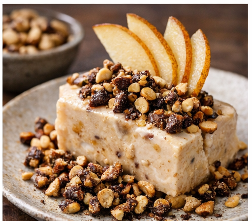- 1 zusätzliche Birne in dünne Scheiben schneiden, leicht anrösten oder als „Rohe Birnenfächer“ anrichten.
